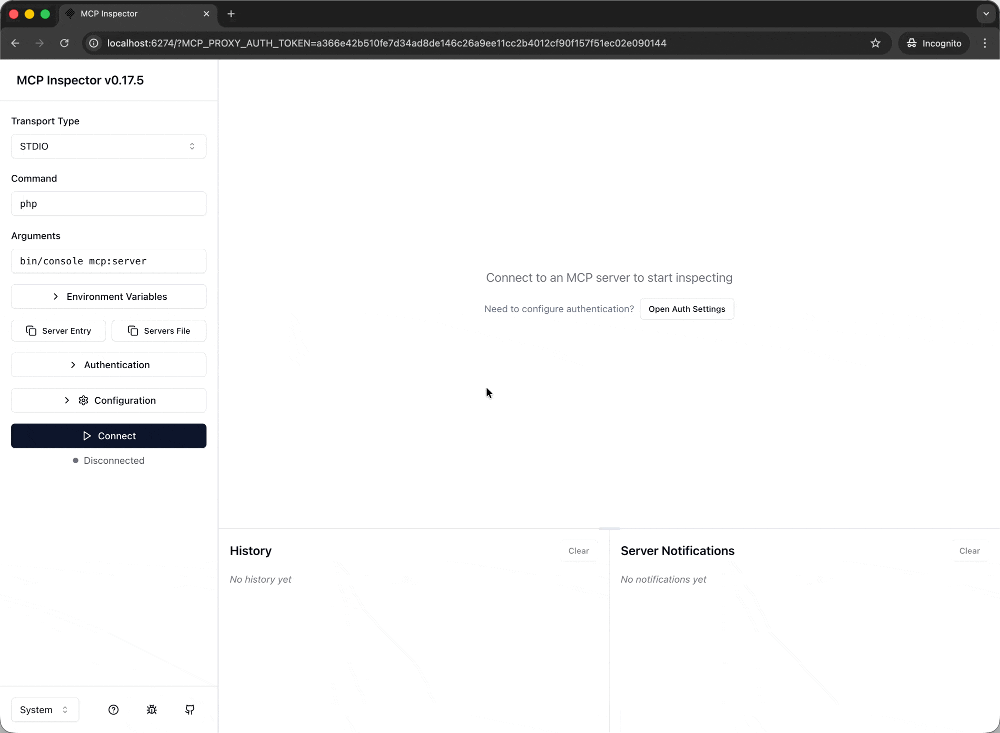make inspector(ormake mcp-stdioto auto-run the STDIO server) - Open the inspector in your browser and do work.