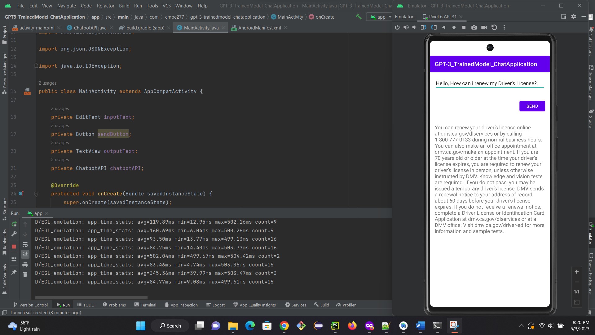 Custom ChatGPT-3 Model Trained on driving rule book from California Driver’s Handbook, 2023 for my Android Application