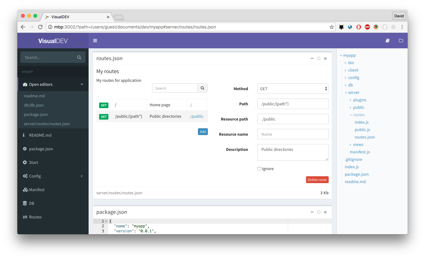 Files with the name ending in routes.json are data models that are edited with a custom route table designer UI.