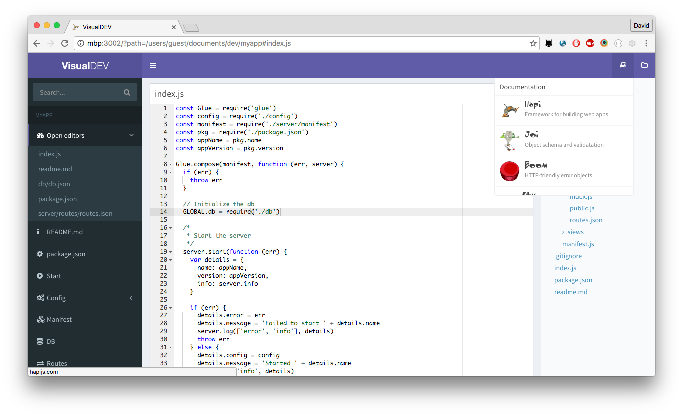 It can be used to edit any text content but it is designed specifically to build hapi.js web applications and services.
