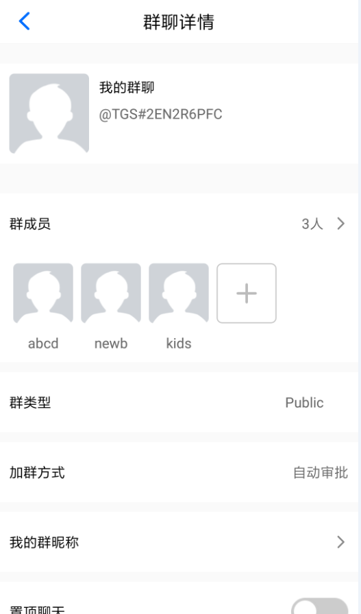 群会话:表示群聊情况下,群内成员组成的会话,群会话内发送消息群成员都可接收到。
