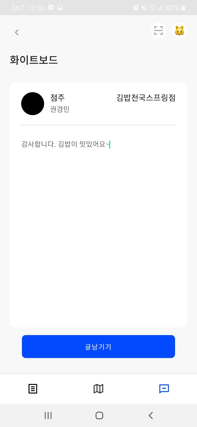 방문했던 장소의 점주에게 메세지를 남길 수 있습니다