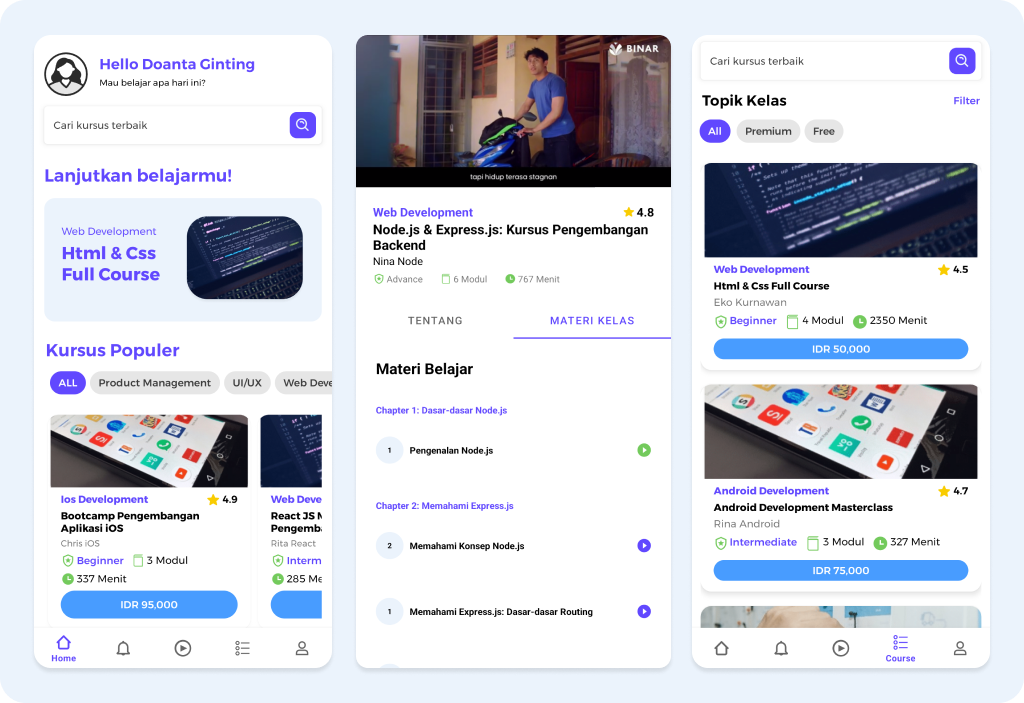 - Online course video with Youtube player