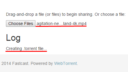 Once downloaded, you need to start seeding the video - for this scroll to the bottom of the page. In the selection box, select the video you downloaded, and if all goes well you should see in the logs "Creating .torrent file..."