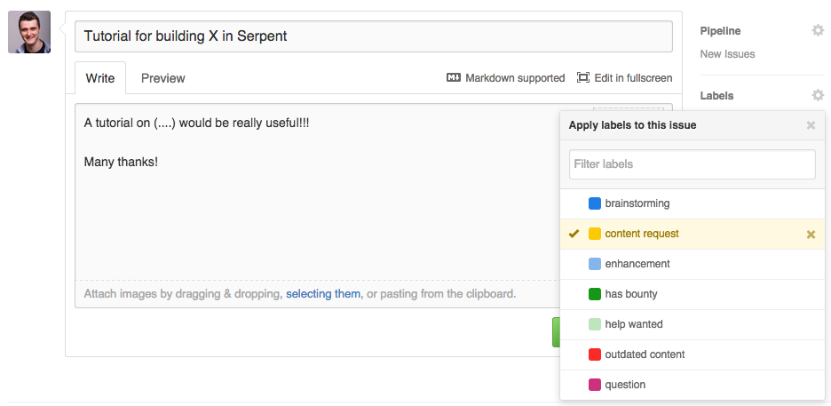 - Open an issue specifyng the topic and content