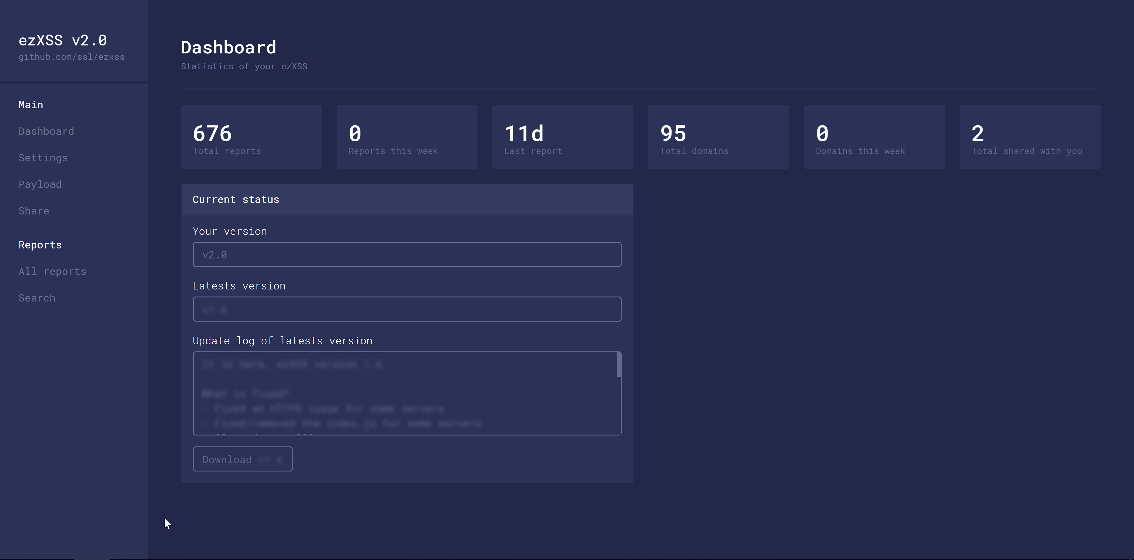 - Easy to use dashboard with statics, payloads, view reports, search reports and more