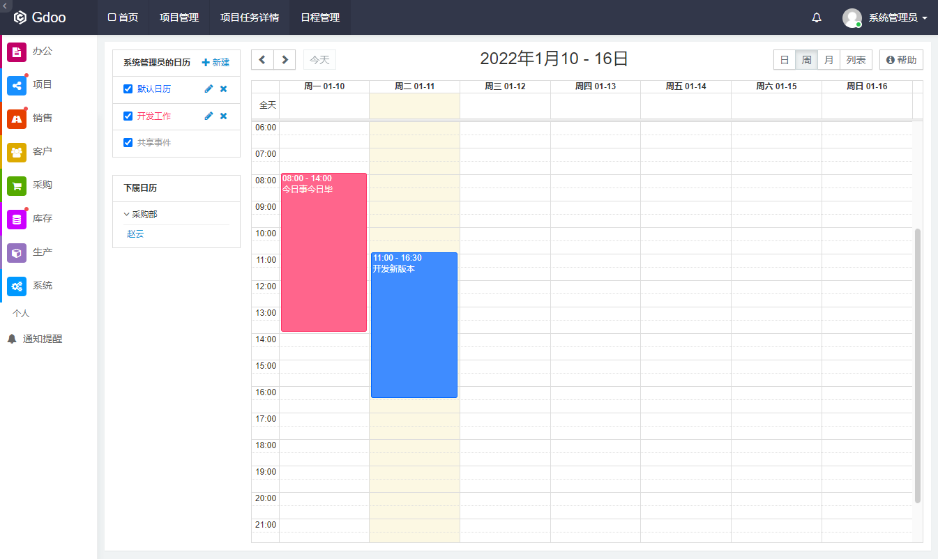 - 新闻公告、讨论、项目任务、日程安排