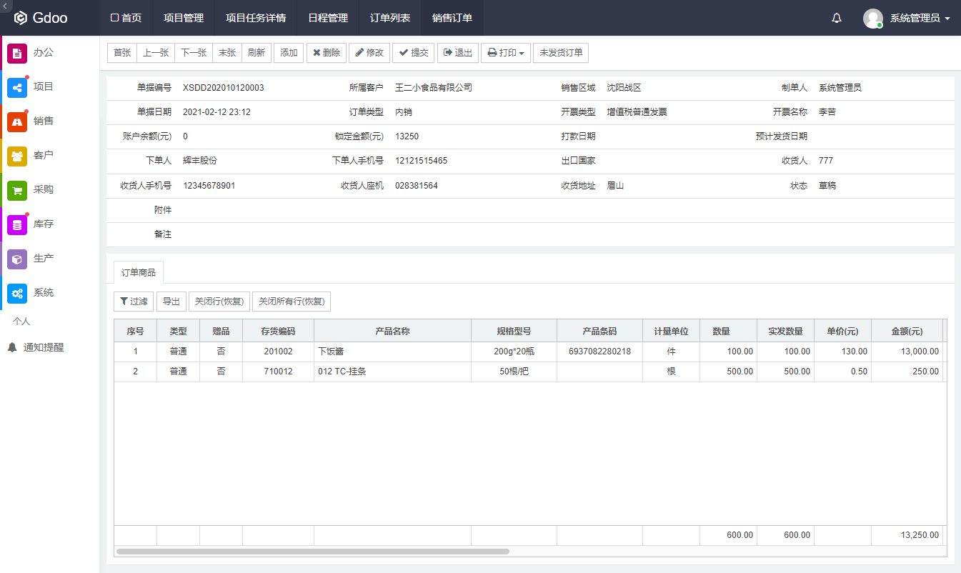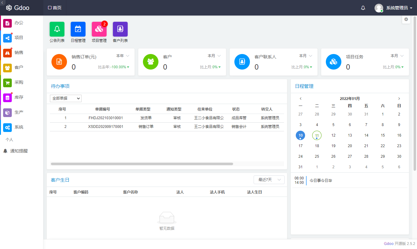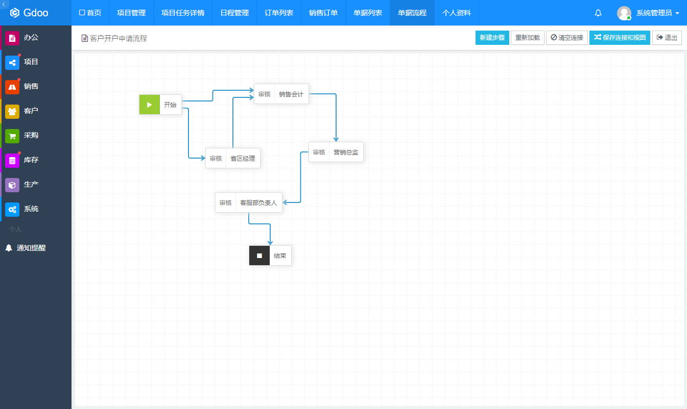 演示地址: http://demo.gdoo.net 帐号:admin, 密码:123456