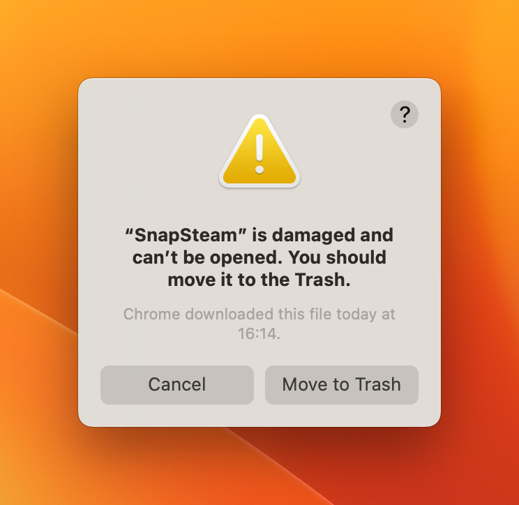 After installing SnapSteam on macOS, you need to run the following command in Terminal to fix the "damaged" error: