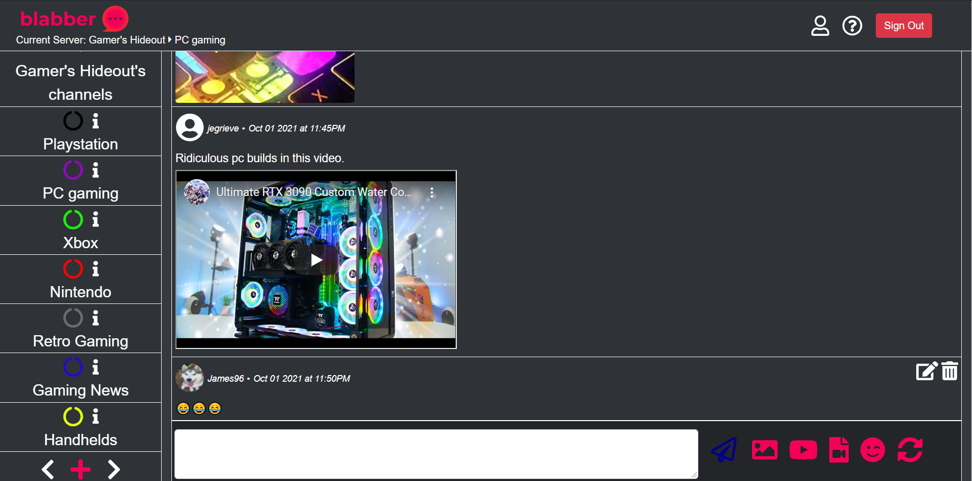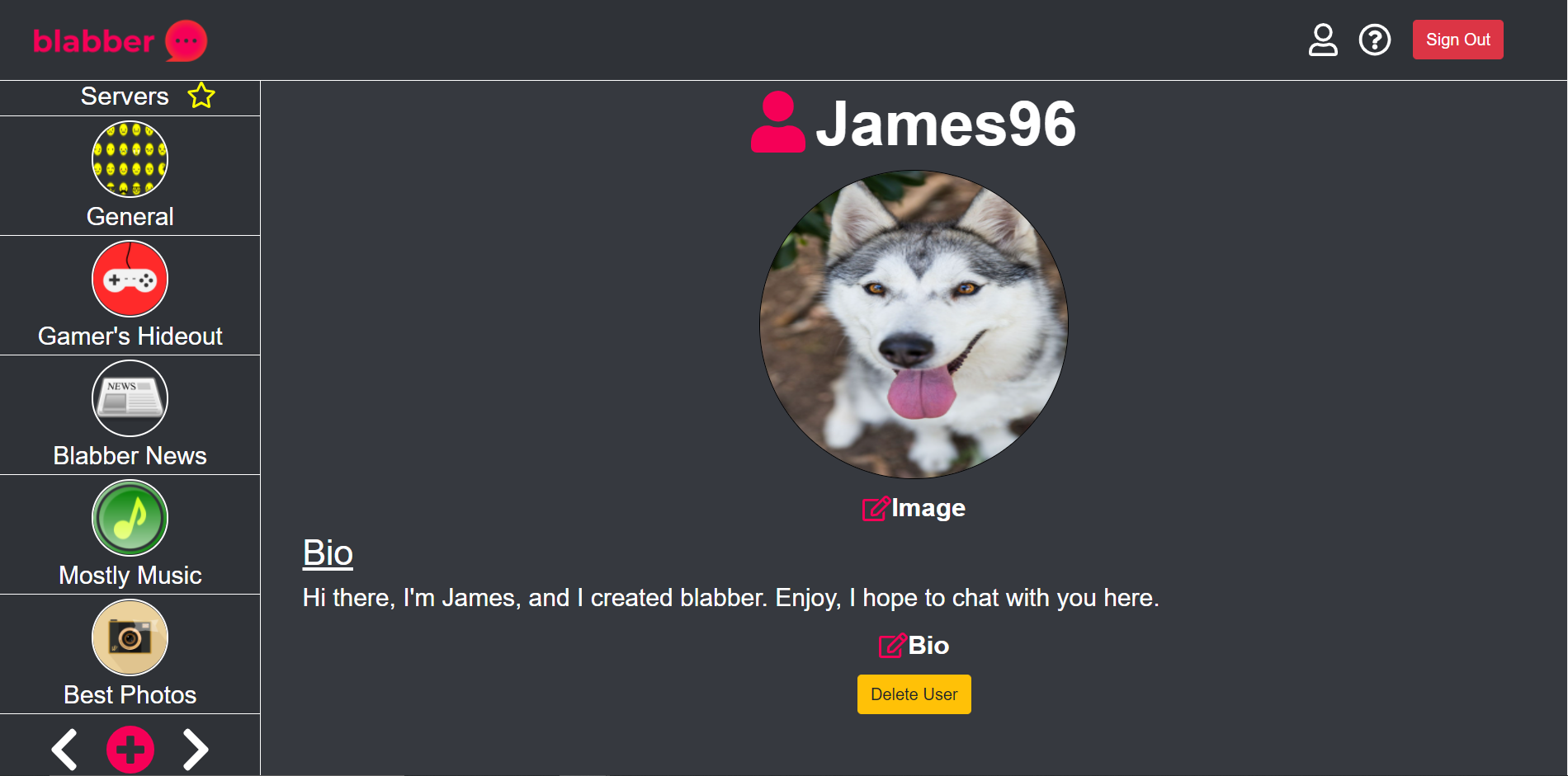 blabber is a community messaging app, where users can send messages to others, in various communities. Send images, videos, GIFs and emojis.