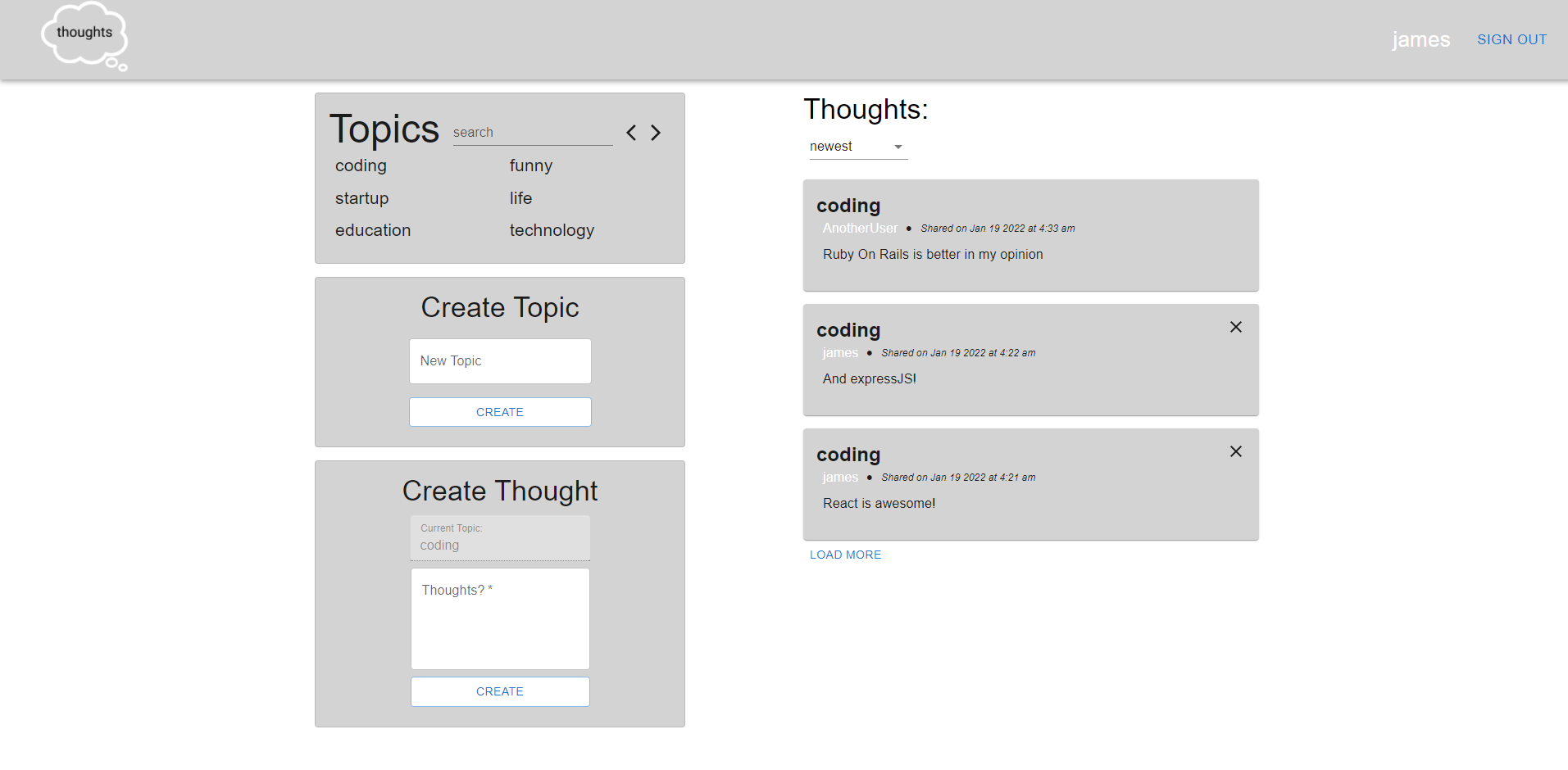 - See users topics and thoughts, and sort them by newest and oldest.