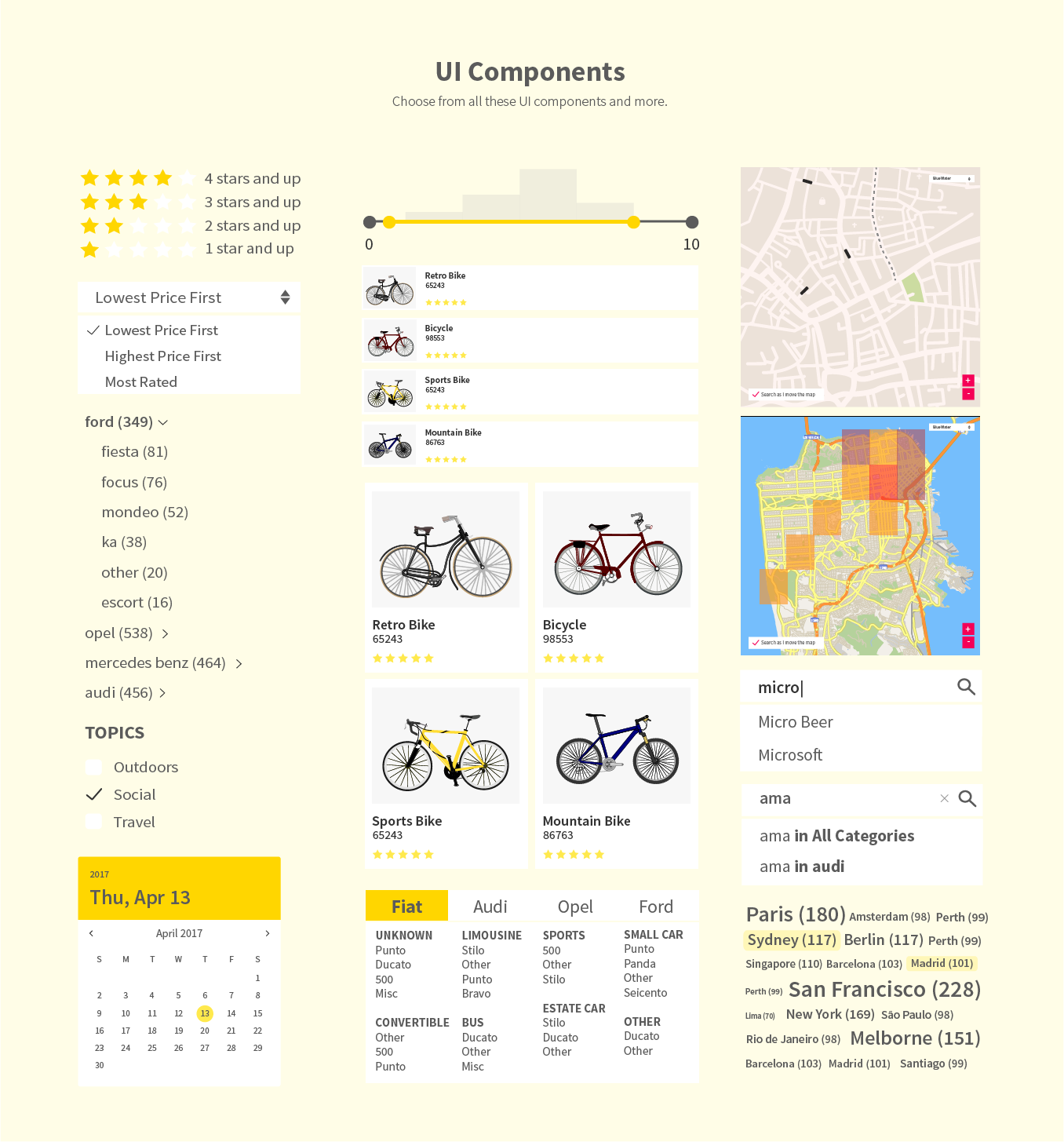 • A RatingsFilter component conveniently applies a ★ ratings filter on a dataset containing ratings like data.