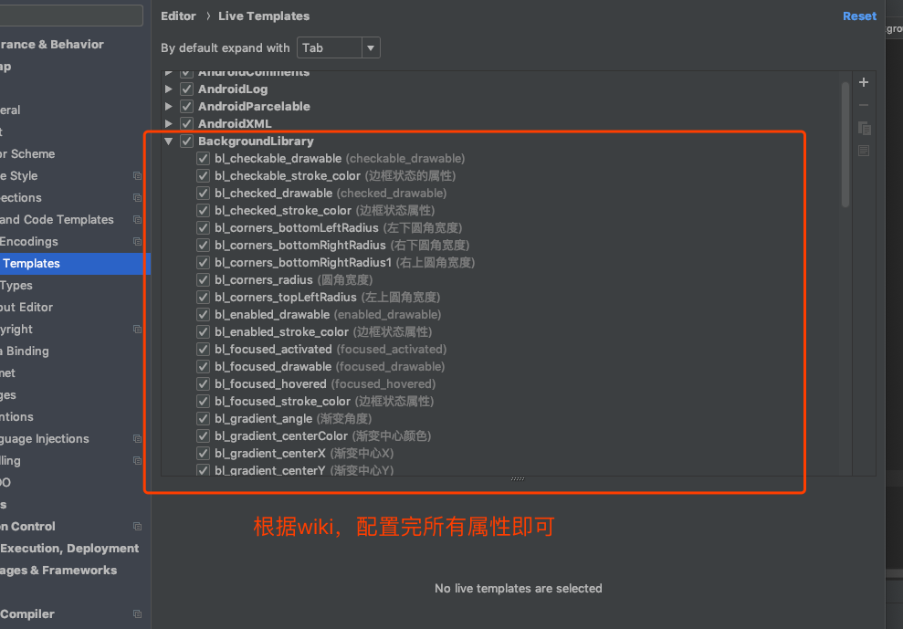下面是所有的自定义属性,使用方法和shape、selector完全一样