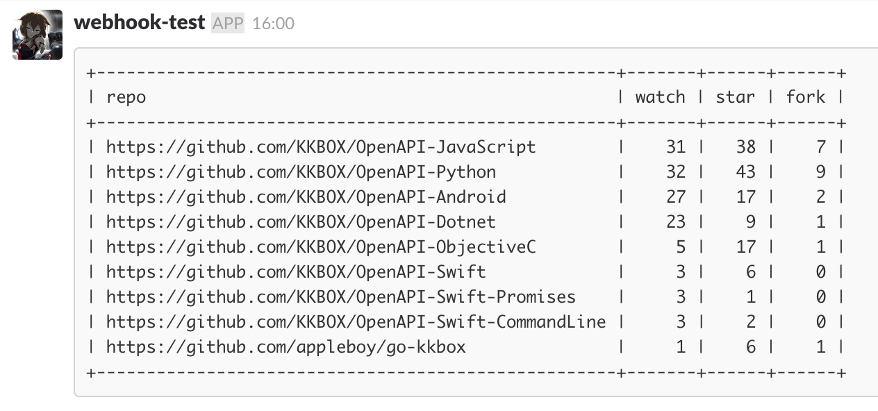 This service monitor multi github repository promoting data and send report to slack channel periodly.