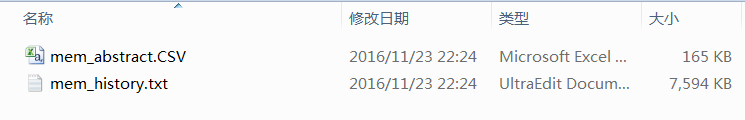 Open the folder,mem_history.txt record detail info and mem_abstract.CSV record abstract info.