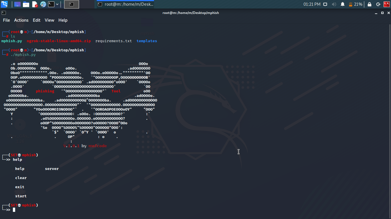 root@kali:~# ./mphish.py
