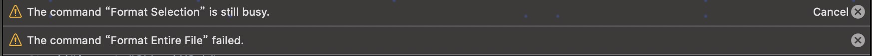 The command "format selection" failed!!!!!! In Xcode 11.5; Objective-c .m source code: 1000+ lines;
