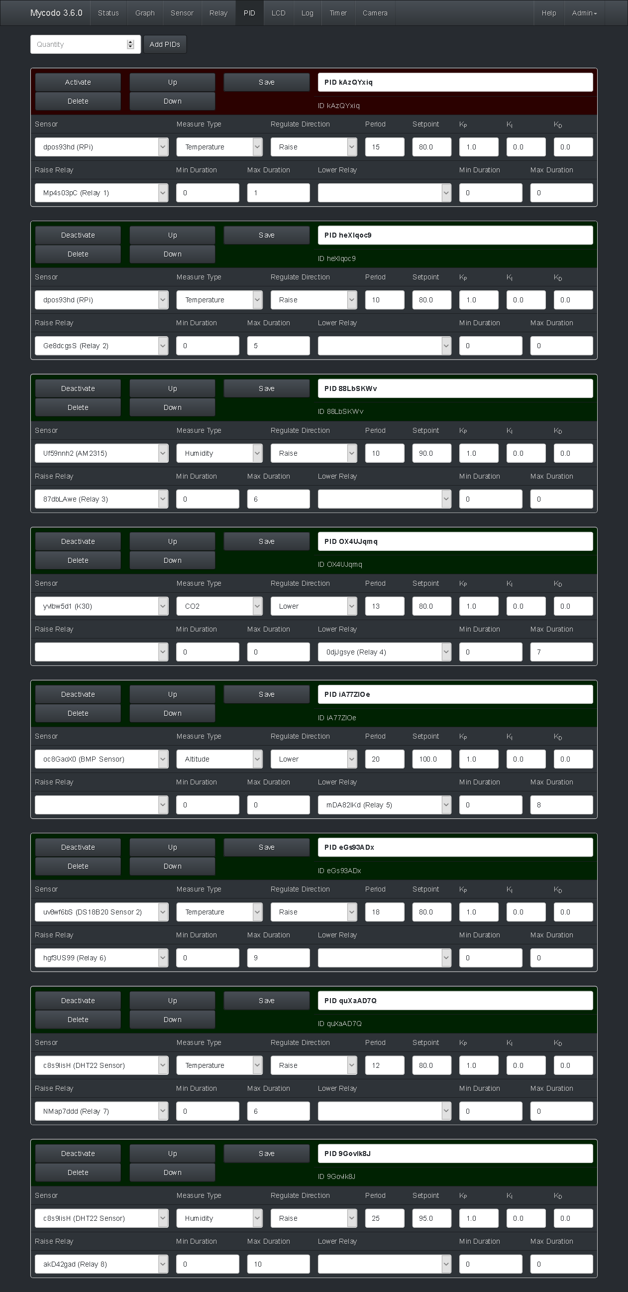 The core system coordinates a diverse set of responses to sensor measurements, including actions such as camera captures, email notifications, relay activation/deactivation, regulation with PID control, and more. Mycodo has been used for cultivating gourmet mushrooms, cultivating plants, culturing microorganisms, maintaining honey bee apiary homeostasis, incubating snake eggs and young animals, aging cheeses, fermenting foods, maintaining aquatic systems, and more.