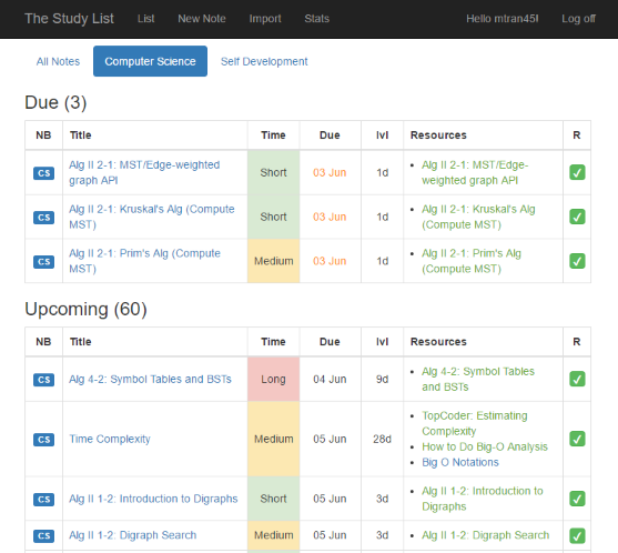 A web app for tracking and scheduling of study reviews, inspired by spaced repetition systems.