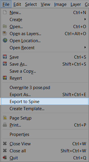 After installation, choose Export to Spine under the File menu.