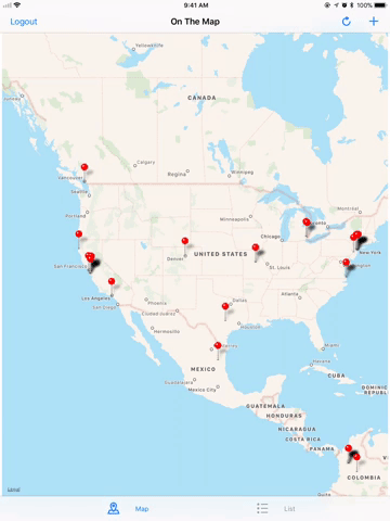 This app uses a map that shows information posted by other students. The map will contain pins that show the location where other students have reported studying. By tapping on the pin users can see a URL for something the student finds interesting. The user will be able to add their own data by posting a string that can be geocoded to a location, and a URL.