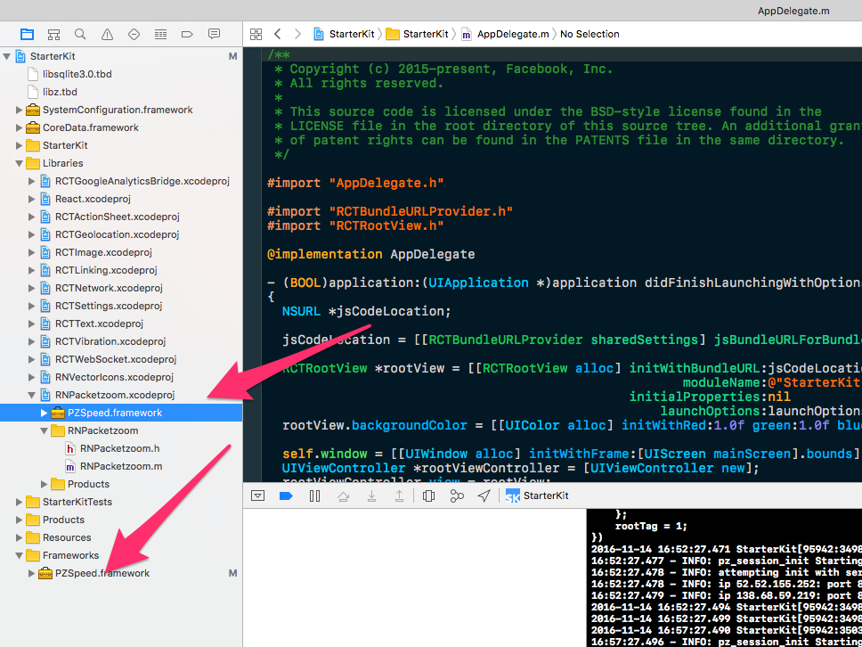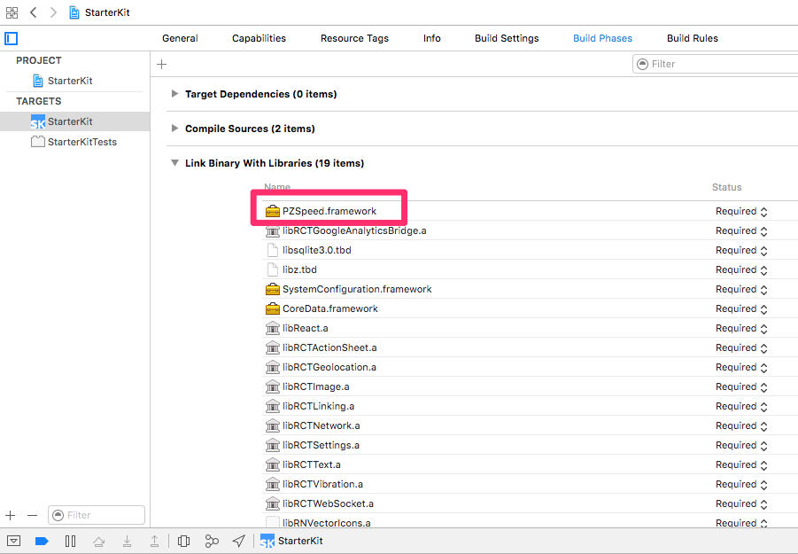 Drag PZSpeed.Framework from RNPacketZoom.xcodeproj to your app frameworks folder like shown bellow: