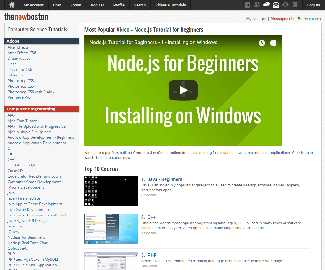 - Videos & Tutorials - one of the webs largest collections of educational videos and tutorials on subjects such as computer science, math, humanities, and more