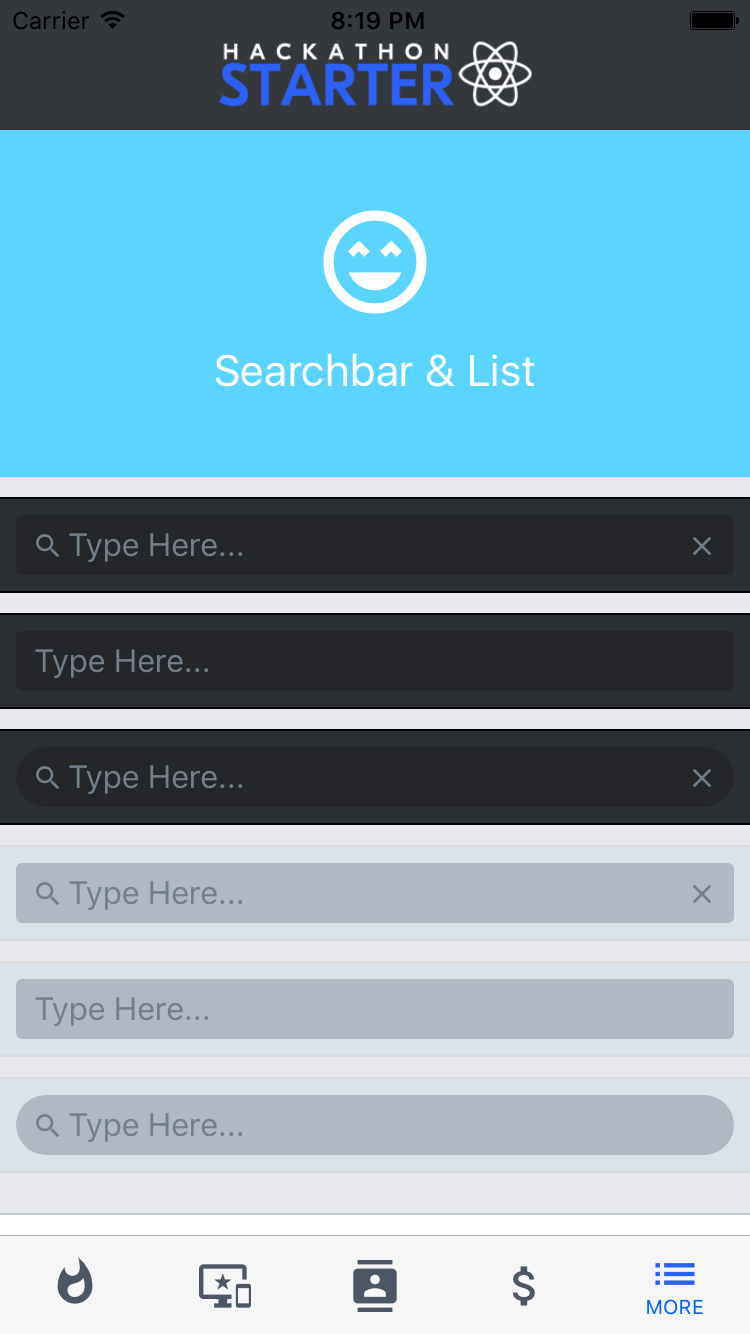Check out the pre built and configured React Native Hackathon Starter Project which uses all of these elements.