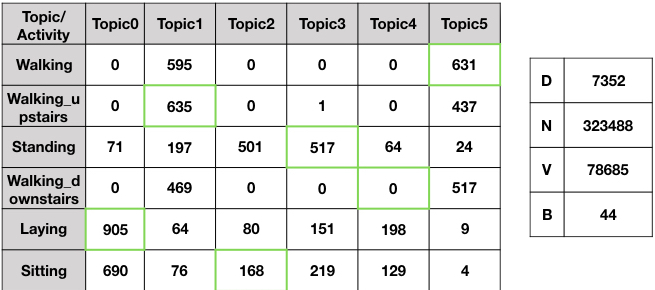 Human Activity Recognition(HAR) from the multivariate sequential sensor data is one of the challenging research problems in pattern recognition and data mining. Most of the machine learning algorithms and deep learning techniques have shown great performance in solving HAR as a classification problem. But, the availability of annotated data is very difficult in many cases. It is very critical to precisely recognize the underlying patterns in sequential data in an unsupervised manner. In our experiment, we explored the performance of Gaussian Latent Dirichlet Allocation(GLDA) in recognizing human activities by considering the latent temporal patterns generated by sensory words. In-text modelling, GLDA has achieved great results by generating semantic coherence between topics with the help of distributed word embeddings. The model architecture, feature extraction techniques and analysis of GLDA results are briefly discussed below with the images.