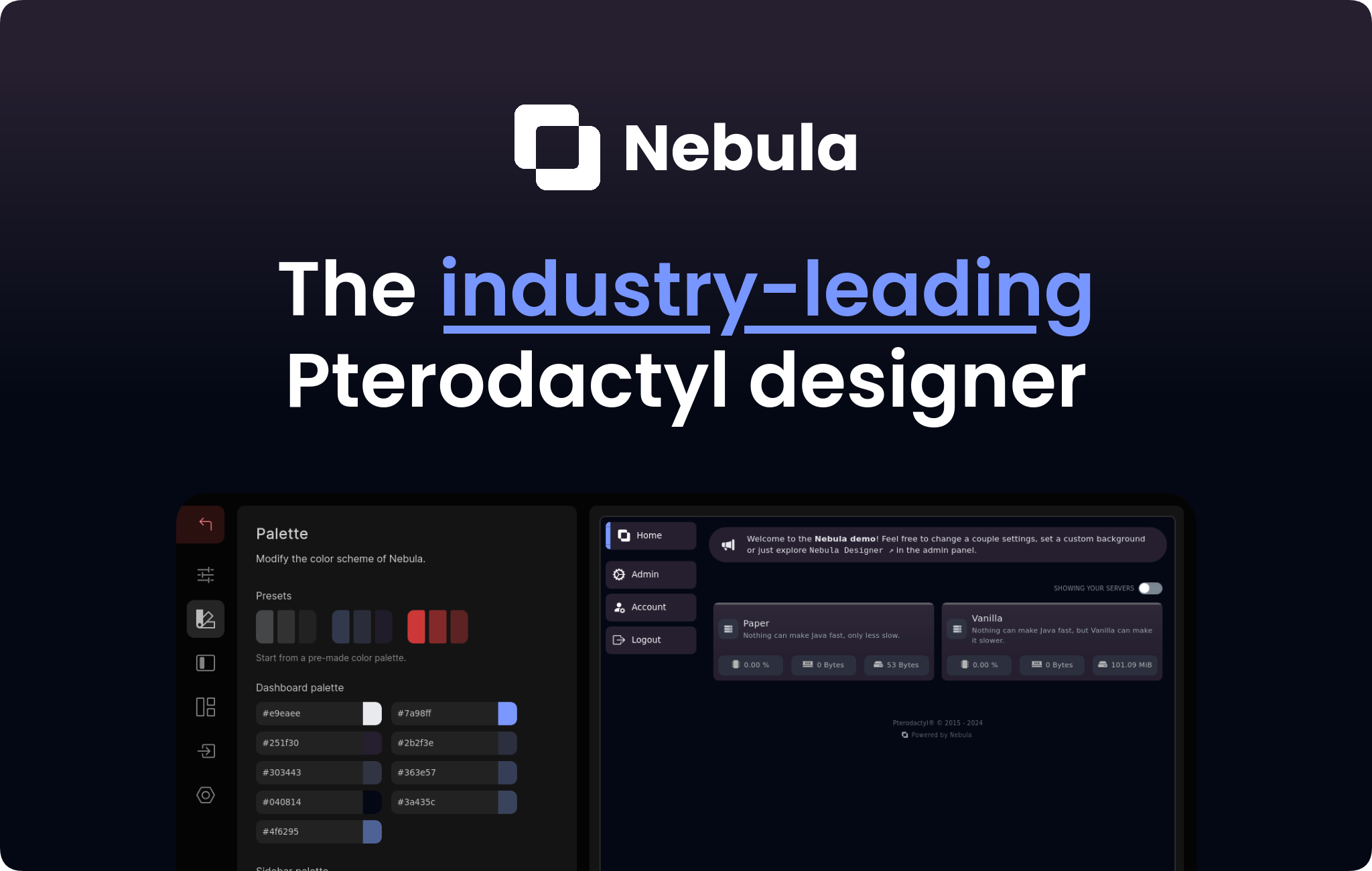 The industry-leading Pterodactyl designer, in your hands. Repository is used for issue tracking, content delivery and feedback.
