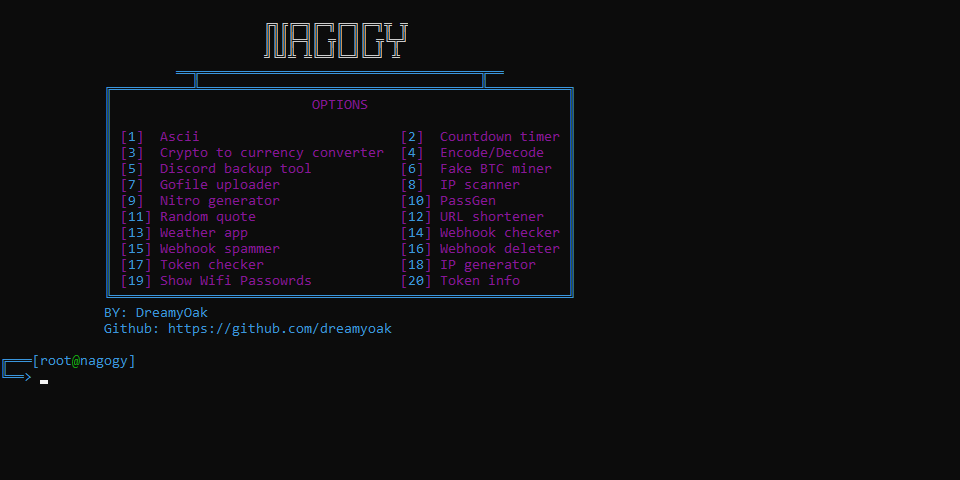 This program is a collection of different tools written in C++. It includes functions for various tasks, such as ASCII art, countdown timers, crypto to currency conversion, encoding/decoding, Discord backup, fake Bitcoin mining, Gofile uploading, IP scanning, Nitro generation, password generation, random quotes, URL shortening, weather information, webhook checking, webhook spamming, webhook deleting, token checking, IP generation, and Wi-Fi password retrieval.