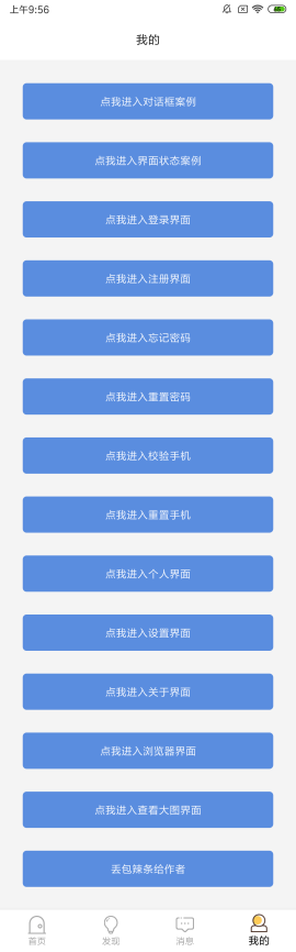 • 常用页面模板:启动界面,主页界面,登录界面,注册界面,关于界面,浏览器界面