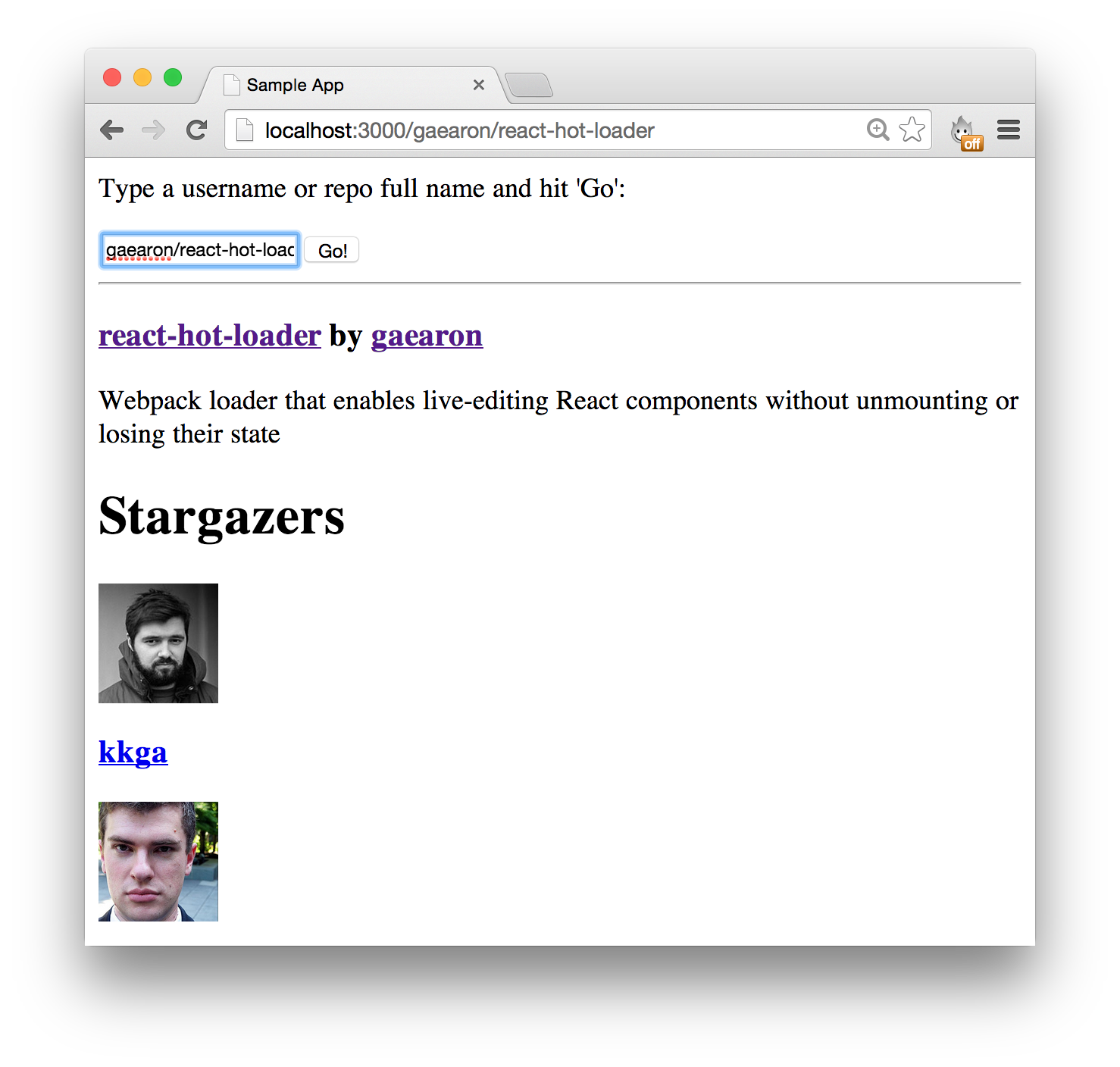 It uses open Github API to display starred repos by users and stargazers by repo.