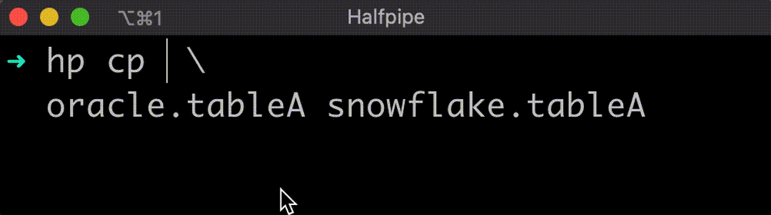 Then execute the CLI tool without any arguments or flags to kick off the pipeline.The CLI arguments for Halfpipe essentially use this format, where a logical connection is