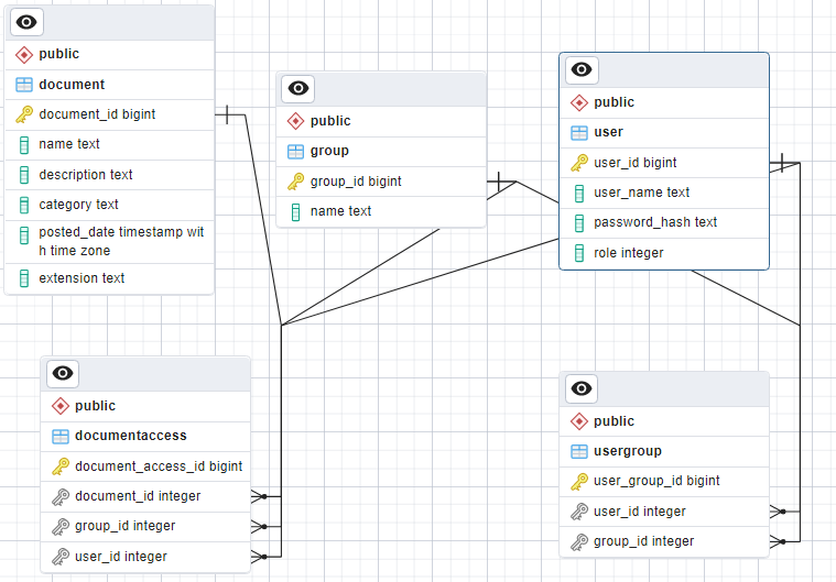- An user with 'Admin' role can manage user/group/document/user-group/document/document-access