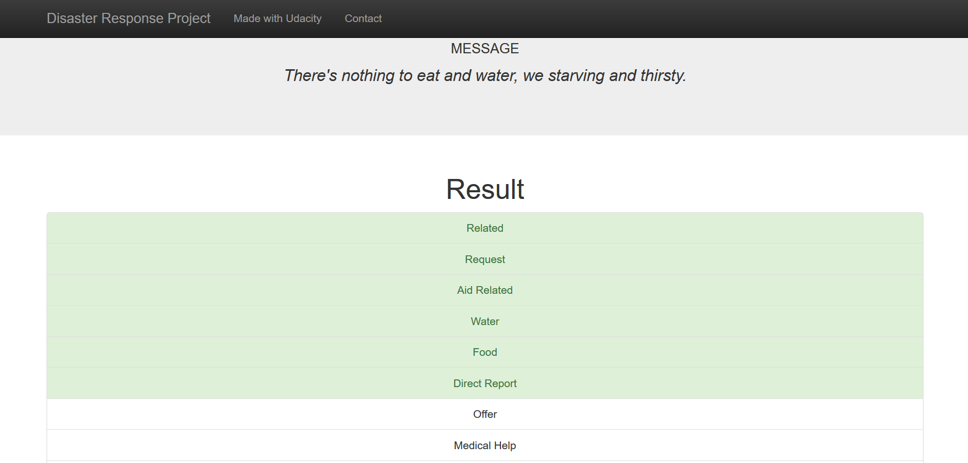 Typically, when there is a disaster, millions of messages reach disaster response organizations via direct or social media. The primary challenge then for these organizations becomes to filter out the relevant and most important messages with the limited resources they have. Also, for disaster response management, different organizations handle different relief operations. While some of them might take care of water-related problems, some others may cater to shelter or medical supplies. So, it is imperative to categorize the relevant messages further into different categories to achieve better efficiency in relief operations. Figure-eight compiled a data set containing real messages sent during disaster events and categorized them under 36 different categories. Our aim for this project is to use natural language processing techniques to process this data and then train a supervised machine learning algorithm to classify disaster messages to categories so we can appropriately handle different needs of the affected people. This project also includes a web app where an emergency worker can input a new message and get classification results in several categories.