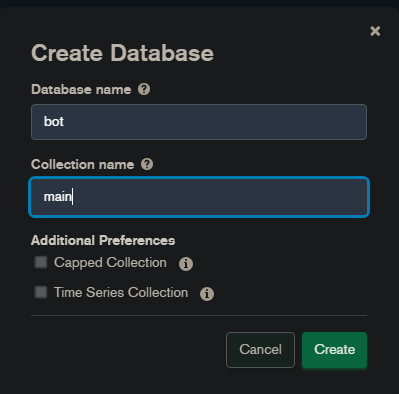 • Paste Database name to bot and Collection name to main.