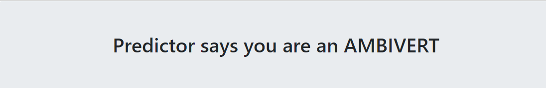 Our Project objective was to develop the machine learning application that would predict the personality trait of a person as Introvert/Extrovert/Ambivert based on 91 personality questions. Our ML algorithm is trained based on survey with the same set of personality questions.