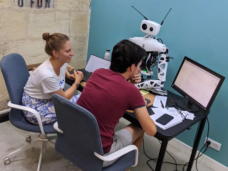 Reachy is a 7 dof human like arm designed by Pollen Robotics for INCIA research lab. Its objective is to serve as base of work on brain control of a prothesic arm.