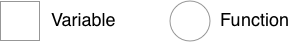 There are two main objects that make this possible - variables and functions. They will be denoted as squares and circles respectively.