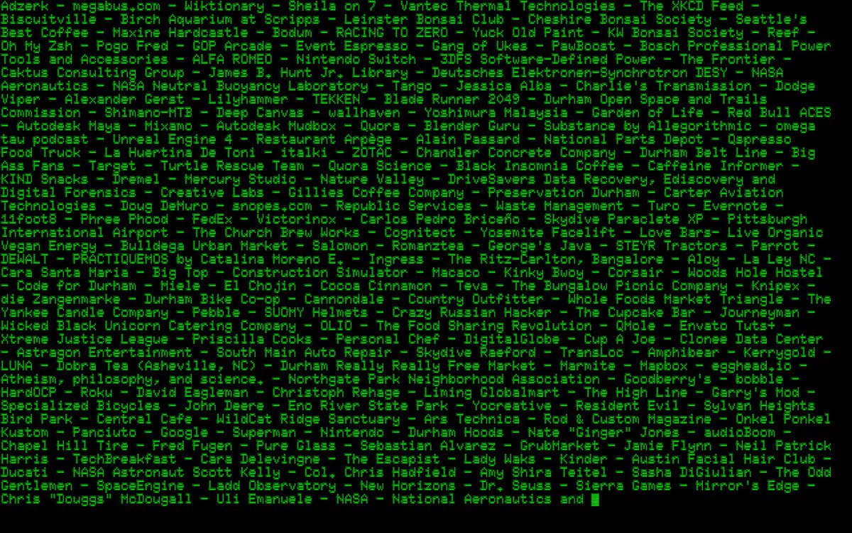 Screensaver that prints the titles of all of your 'Liked' Facebook pages, made by using the output of