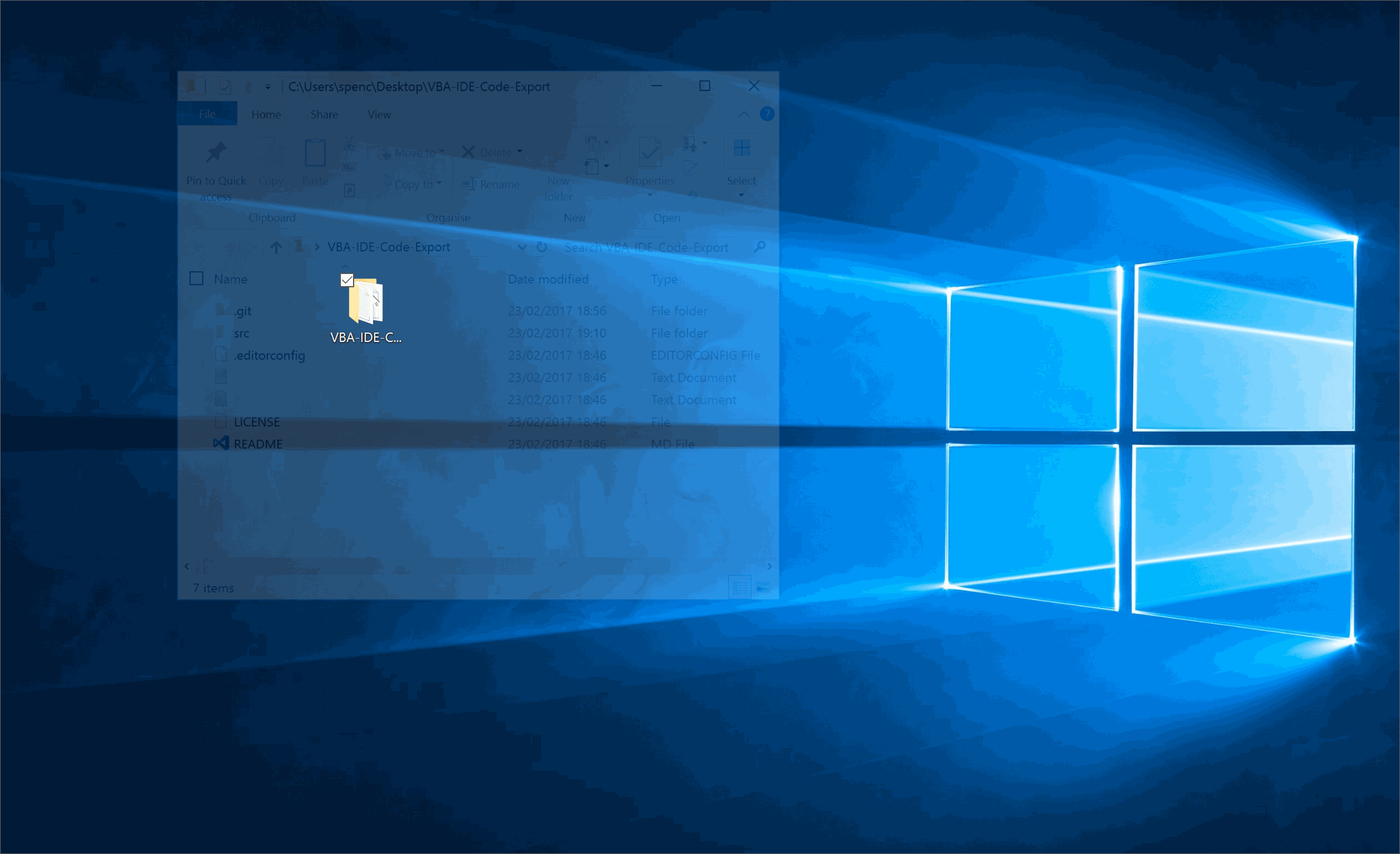 VBA-IDE-Code-Export. Open the empty .zip file then drag and drop the