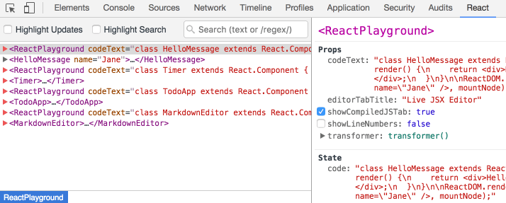 React Developer Tools lets you inspect the React component hierarchy, including component props and state.