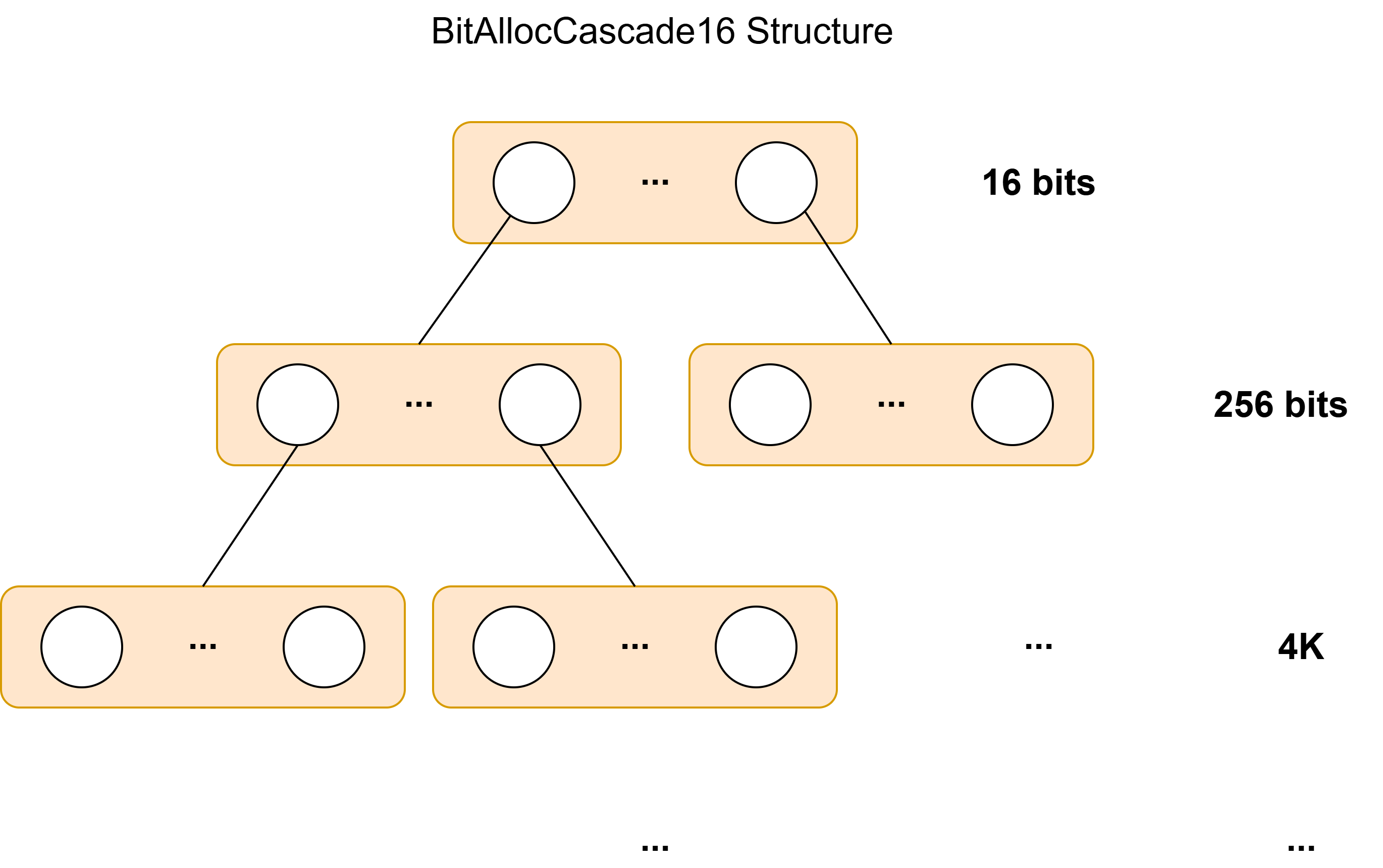 - The third layer is BitAllocCascade16, forming a complete 16-ary tree.
