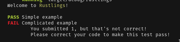 Each exercise is contained in a Rust file called about_<exercise topic>.rs. A minimal exercise looks