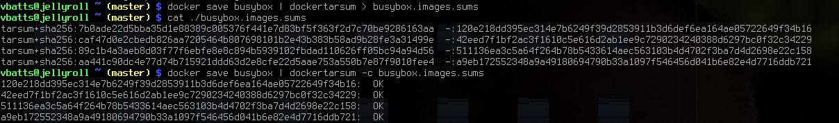 $ dockertarsum -c ./busybox.tar.sums ./busybox.tar