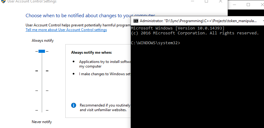 Bypass User Account Control by manipulating tokens (can bypass AlwaysNotify)