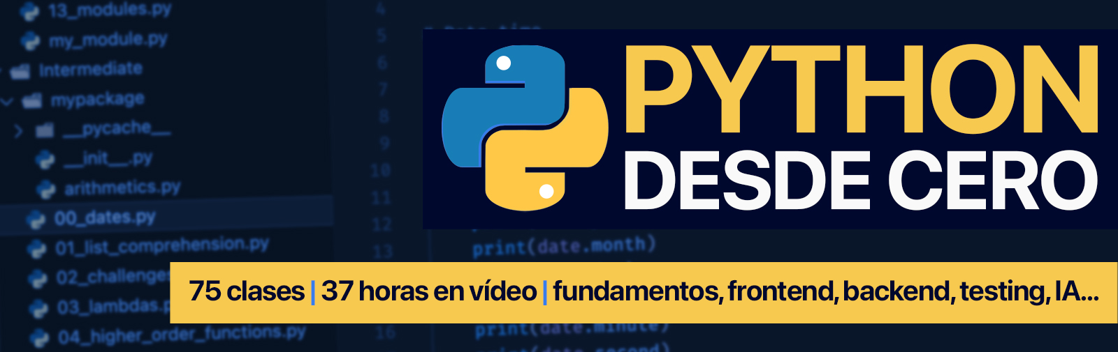 Curso en el que continuamos aprendiendo Python desde sus bases, siguiendo la ruta de aprendizaje desde la última lección del curso de inicial.