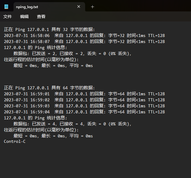 nping_log.txt文件,通过-f选项可关闭日志功能 。