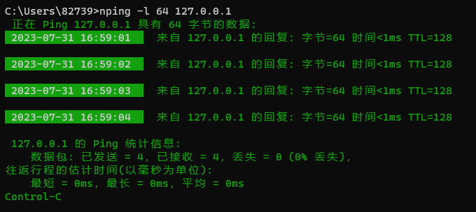 nping命令基于windows原版ping命令,进行二次封装,除支持原ping命令部分功能外,还默认支持将命令行的输出打印日志到桌面的